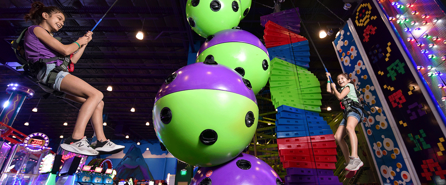 Introducing Tom Foolerys Adventure Park, an interactive world of fun and adventure with state-of-the-art thrill rides, games and more! This whopping 80,000 square foot adventure park features a challenging ropes course, climbing wall, indoor zip line, bowling, laser tag, and 250 of the very best in arcade games. When it's time to dry off, or if you simply want to up the thrill level, this adventurous park has just what you need.