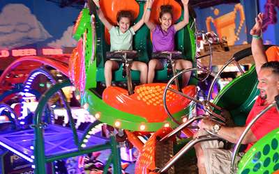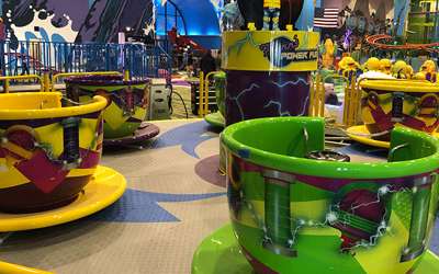 Grab your favorite Power Fuge Cup and get strapped in! This Non-Stop Spinning Attraction goes round and round on the turntable floor.